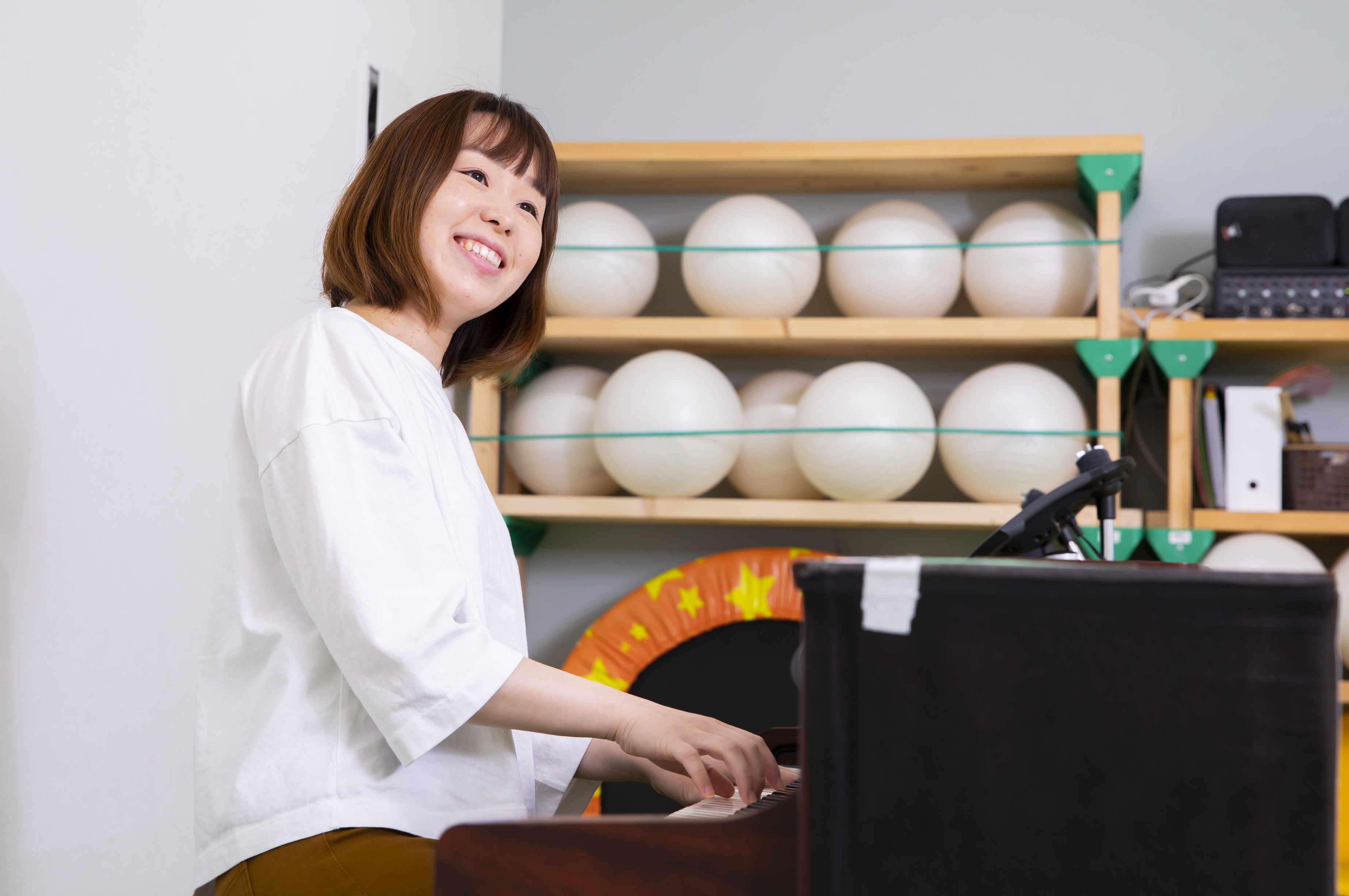 リトミック、発声や歌の伴奏、絵描き歌、場面の切り替えの合図など常に生演奏が奏でられているので